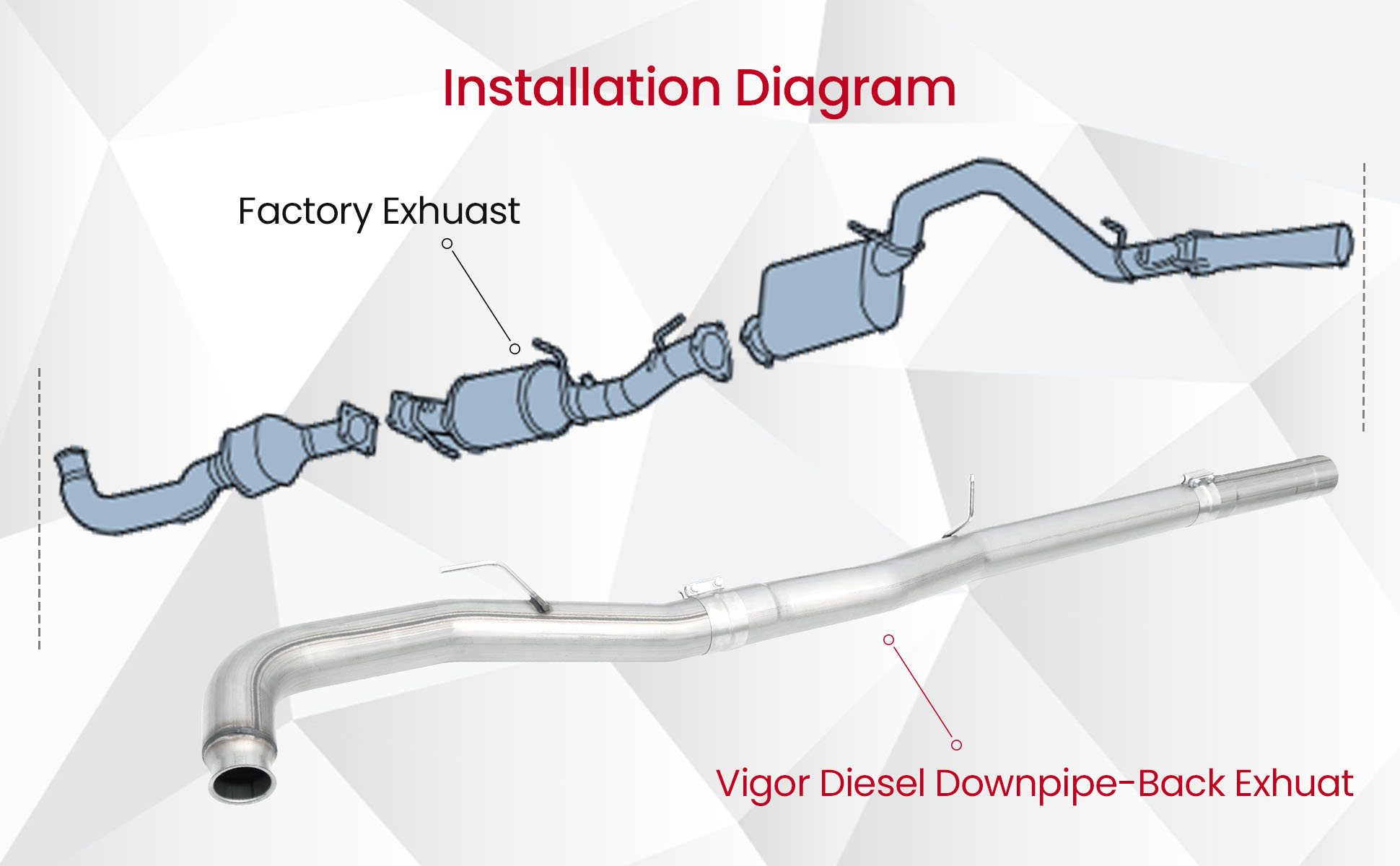• Performance Unlock: Vigor Diesel*s 4-inch delete pipe improves exhaust flow, allowing the Duramax LML engine to produce stronger and more consistent power.